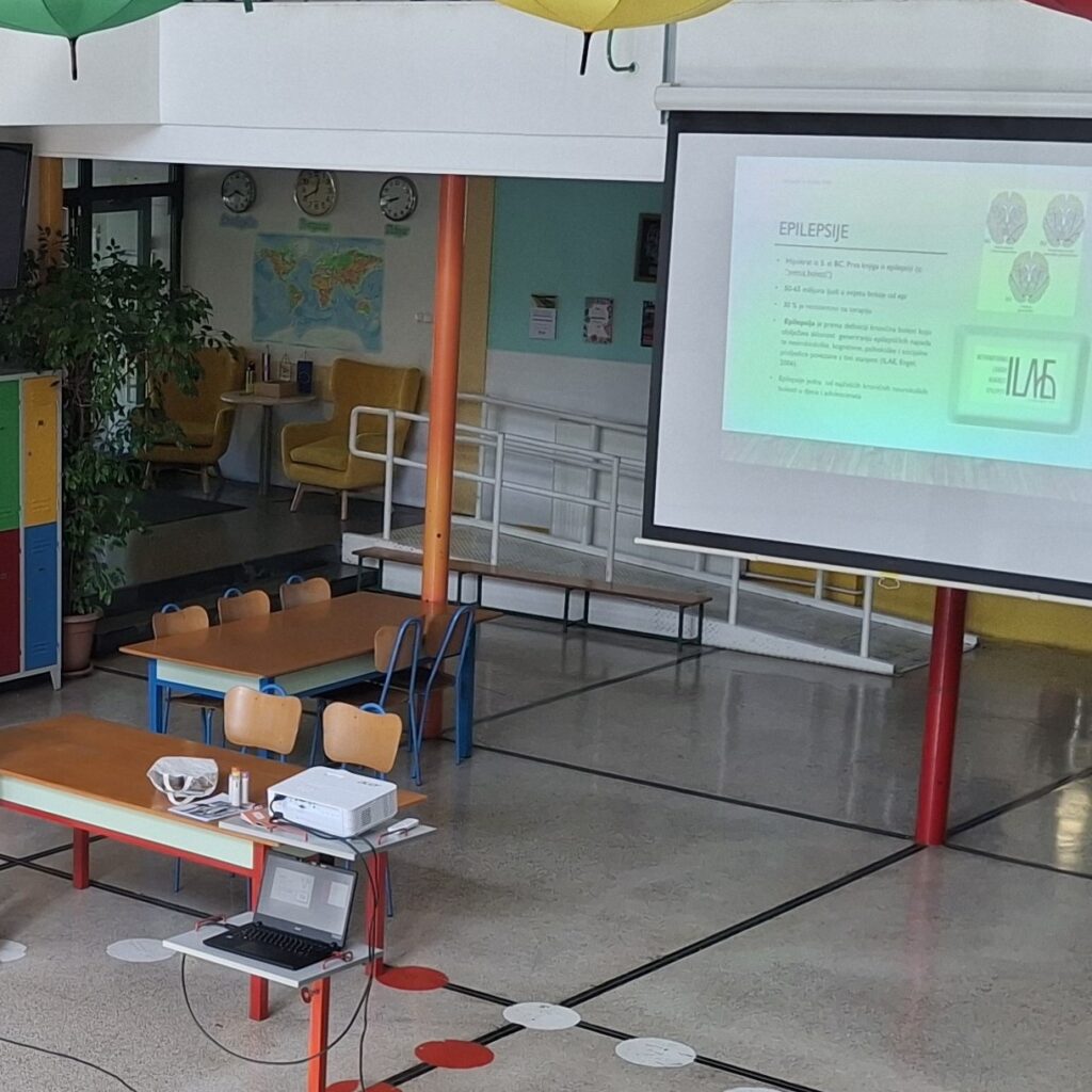 Školska pedagoginja Neža Matovina održala je preventivnu radionicu za učenike 7. b, a knjižničarka Mojka M. Lavrić upoznala nas je s programom KIZ (Knjižnično informacijska znanja) koji provodi po 4 sata tijekom školske godine u svakome razredu. Aktivnosti s terapeutskim psićem primjenjuje u različitim situacijama s učenicima.