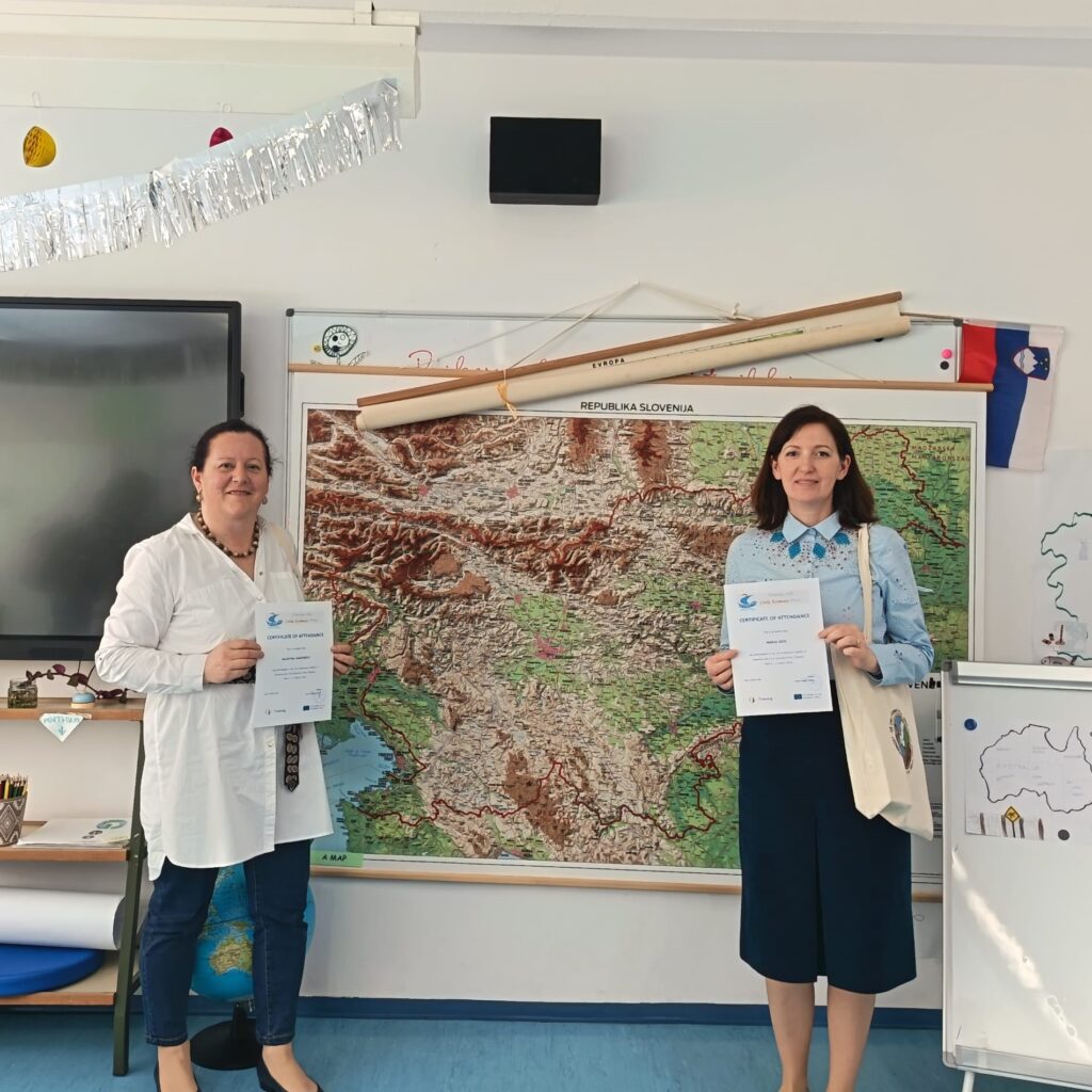 Prošloga tjedna učiteljice Valentina Martinček i Marija Aščić posjetile su, u sklopu Erasmus projekta, OŠ Cirila Kosmača u Piranu sudjelujući na E – job shadowingu. Srdačno nas je dočekala koordinatorica Vika Kuštin i upoznala sa svojim kolegama i ravnateljicom. Koordinatorice su nas informirale o radu škole i sudjelovanju na međunarodnim projektima. Školska je zgrada veća od naše, imaju 300 učenika u matičnoj i 60 u područnoj školi. Učenici kreću u osnovnu školu sa šest godina, imaju 9. razred. Škola je građena u obliku slova V, učionice su kvadratnoga oblika i svaka ima izlaz na terasu sa cvjetnim gredicama.